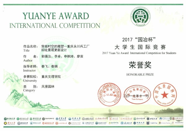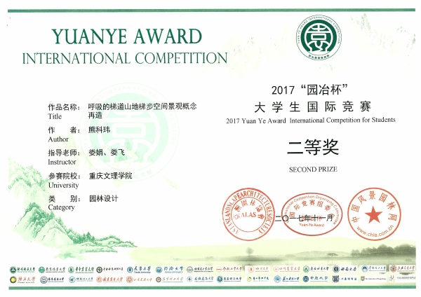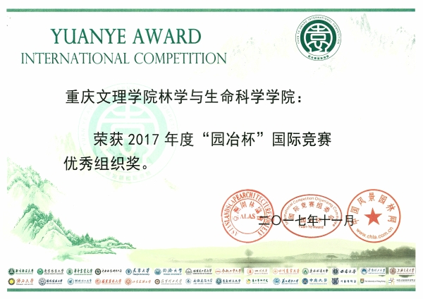 近日,从北京召开的第八届园冶高峰论坛暨亚洲园林大会传来消息,我校林学与生命科学学院娄娟教授、娄飞高级工程师领衔的学生创意设计团队在2017年“园冶杯”大学生风景园林国际竞赛中获得佳绩,荣获二等奖2项、优胜奖1项。其中,“被重新规划与设计的生态位·多功能的三角形”和“呼吸的梯道山地空间景观概念再造”分别获得毕业设计组别二等奖和课程设计组别二等奖,“穿越时空的雕塑——重庆永川兵工厂旧址景观更新设计”获得课程设计组别荣誉奖。该奖项的获得实现了我校学生在国际级景观设计竞赛中获奖零的突破。林学院获得大赛组委会颁发的“先进集体奖”和“优秀组织奖”。