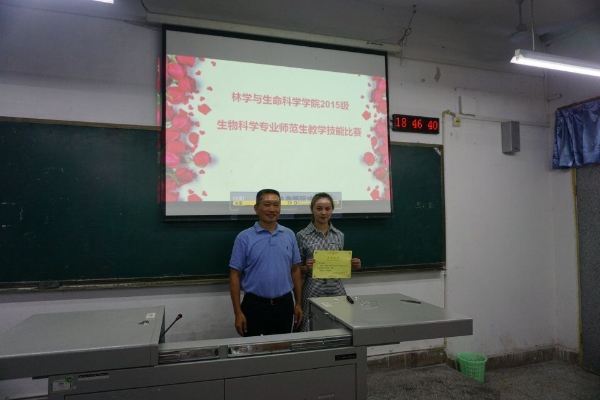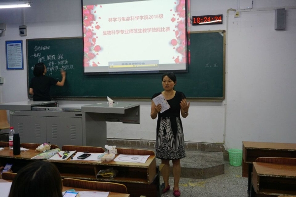 5月16日下午14时30分,我院在星湖校区一教学楼XJ--1207举行2015级生物科学专业师范生教学技能比赛,担任本次大赛的评委有林学与生命科学学院院长杨帆教授、副院长谢吉容教授、学校教务处实践科科长陈华老师、学校教师卓越班任华老师及其学院老师共7人,大赛由陈德碧老师主持。