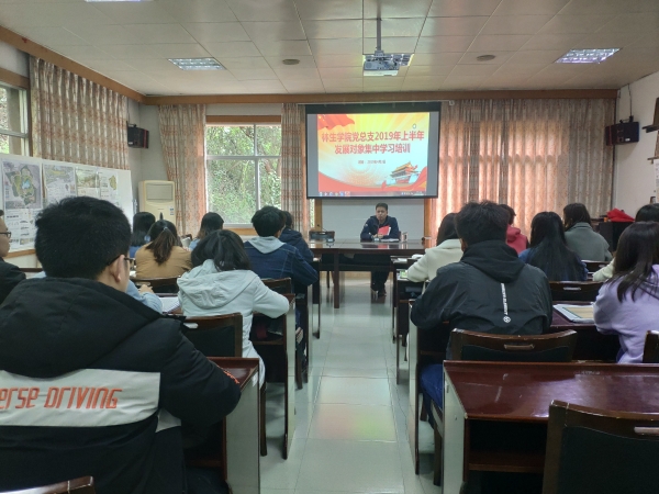2019年4月3日,林学与生命科学学院党总支在星湖校区励德楼406会议室对2019年上半年发展对象进行了集中学习培训。出席本次会议的有党总支书记谢荣成,团总支书记、专职组织员贺方云,支部书记周凡力、宋卿及20名发展对象,会议由贺方云老师主持。