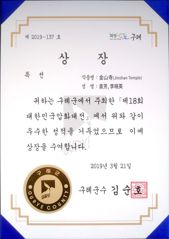 2019年3月21日,在韩国邱礼举办的第18届韩国国际压花大赛落下帷幕。我校林学与生命科学学院教师廖静与2016级园林专业学生李吉星合作完成作品《高山流水》获银奖;薛梅老师与2016级园林专业学生鲁银君合作完成作品《乡水人家》获特选奖;李晓英老师与2016级园林专业学生袁芳合作完成作品《金山寺》获特选奖。
