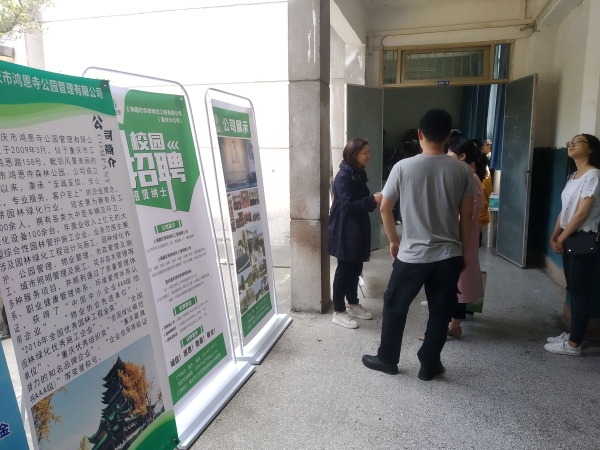 5月22日,林学与生命科学学院关工委在星湖一阶成功举办园林专项招聘会。重庆吉盛园林景观有限公司、成都蜀汉园林有限公司重庆分公司、上海国宏市政绿化工程有限公司重庆分公司、重庆市鸿恩寺公园管理有限公司、重庆京玲园林有限公司等5家企业参会,提供多个就业岗位,吸引了两百余名园林学子前来应聘。