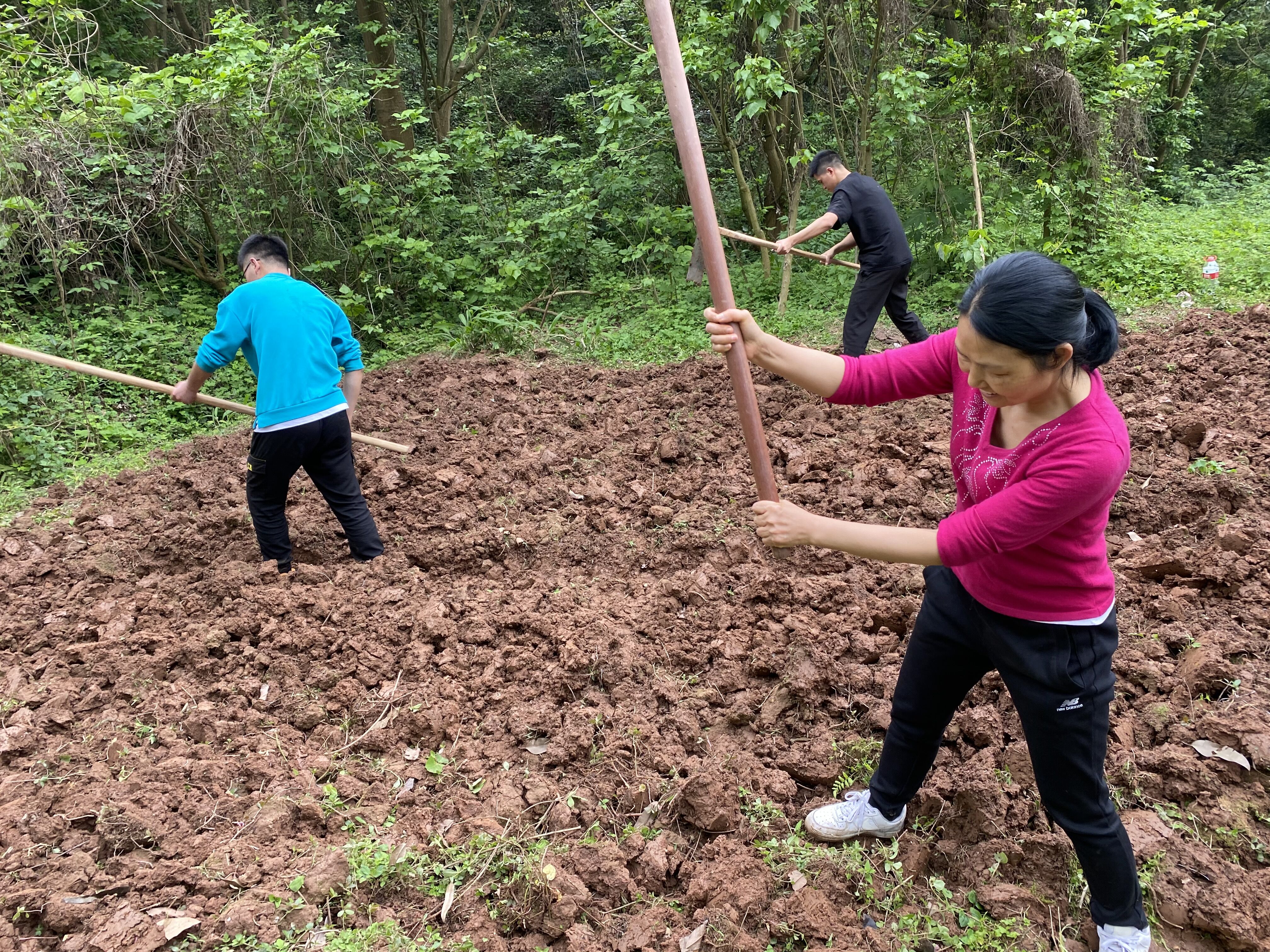 系主任黄科示范了翻土、挖沟、起垄、移栽等劳动技能。随后学生分组劳动,拔野草、抡锄头、量土地、理小苗、做记录,有模有样,手脚沾满了泥土,粉脸笑开了花。