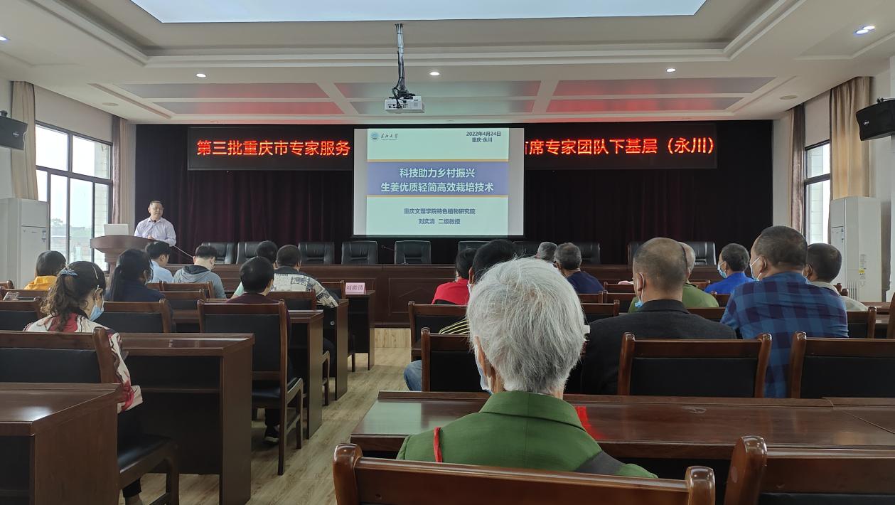 2022年4月24日,我院专家团队赴黄瓜山村开展“重庆市永川区乡村振兴生姜优质丰产标准化轻简栽培技术培训”,重庆市第三批永川生姜专家服务团专家刘奕清教授、李洪雷教授、黄科副教授等参加了培训会。