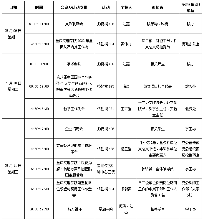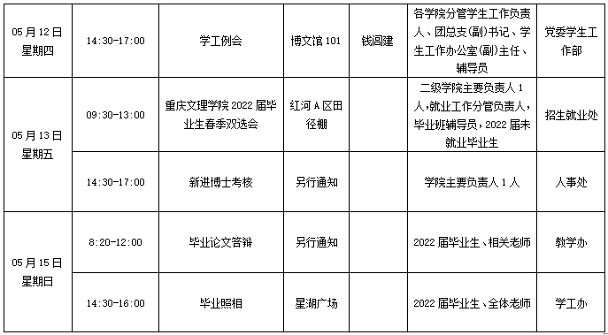 园林学院2021—2022学年第二学期第12周会议 (活动)及工作安排