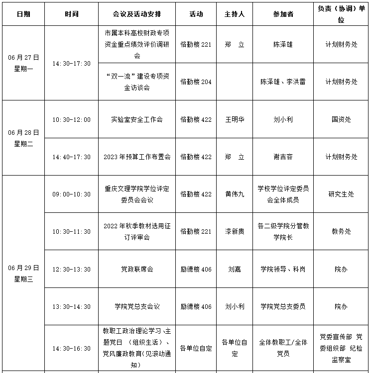 园林学院2021—2022学年第二学期第19周会议 (活动)及工作安排