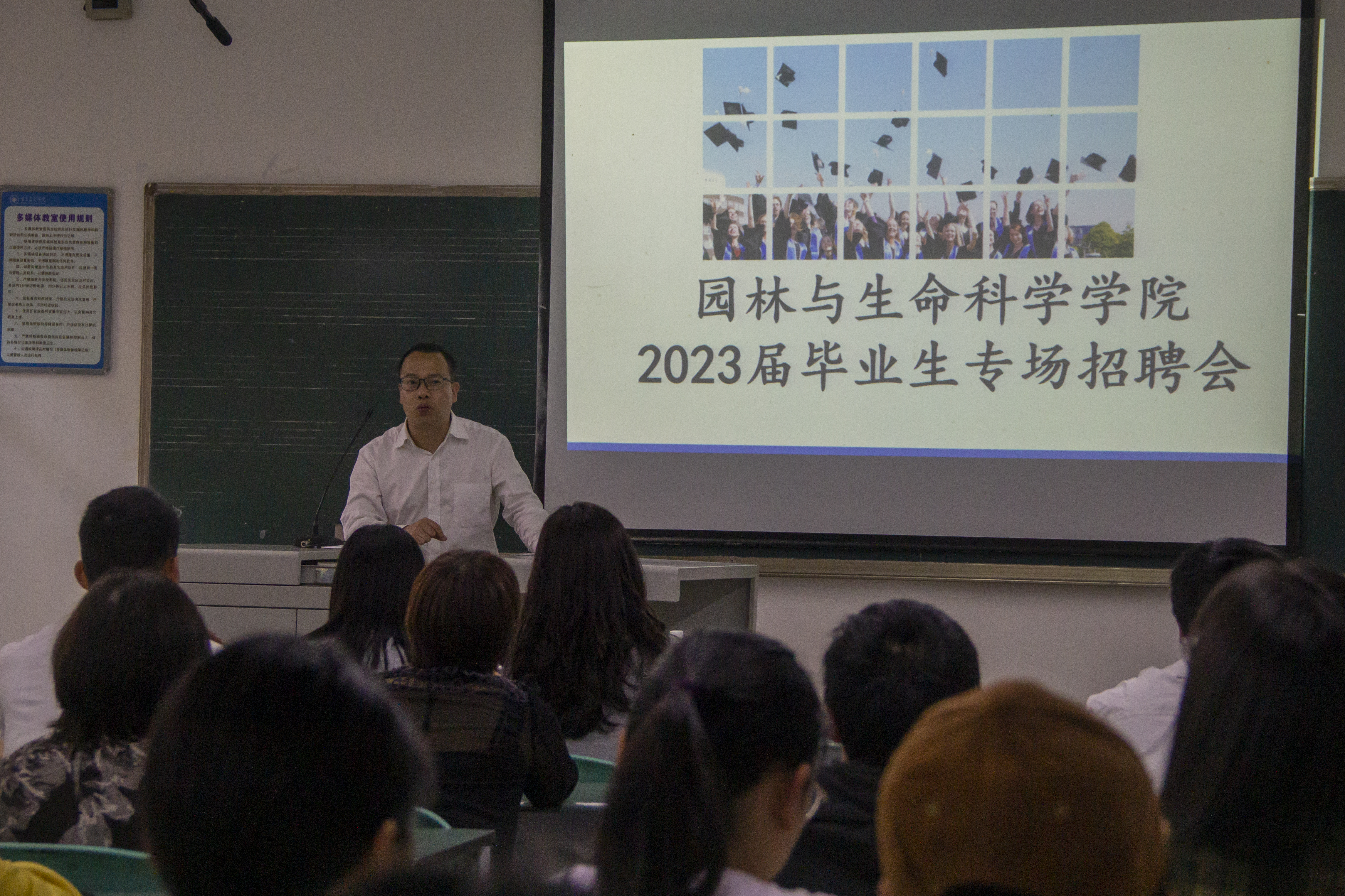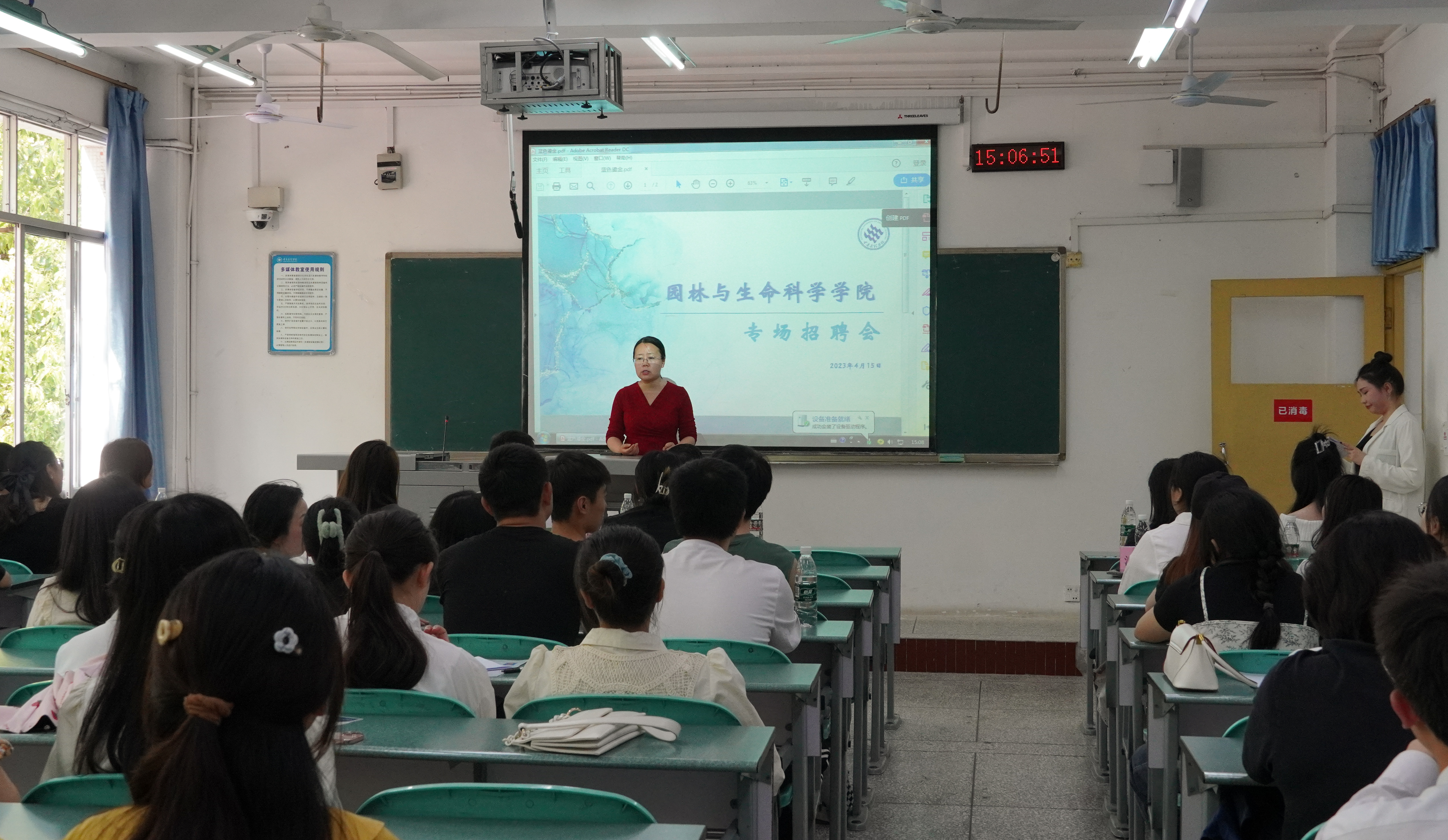 4月15日下午,园林学院专场招聘会在星湖校区举行。本次专场招聘会在XJ-2100和XJ-2300设园林园艺专业和生技食品专业分会场,学院党总支书记刘小利、党总支副书记/副院长孙翰昌分别主持分会场招聘活动。学校招生就业处副处长周道林、学院领导、各企业负责人、毕业班辅导员及2023届毕业生、2024届学生200余人参加了本次招聘会。