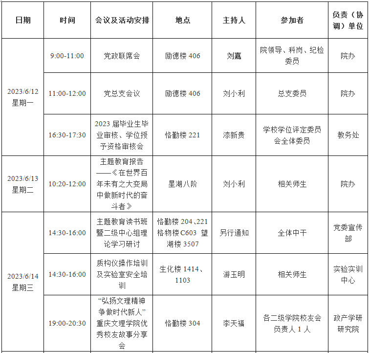 园林学院2022—2023学年第二学期第17周会议 (活动)及工作安排