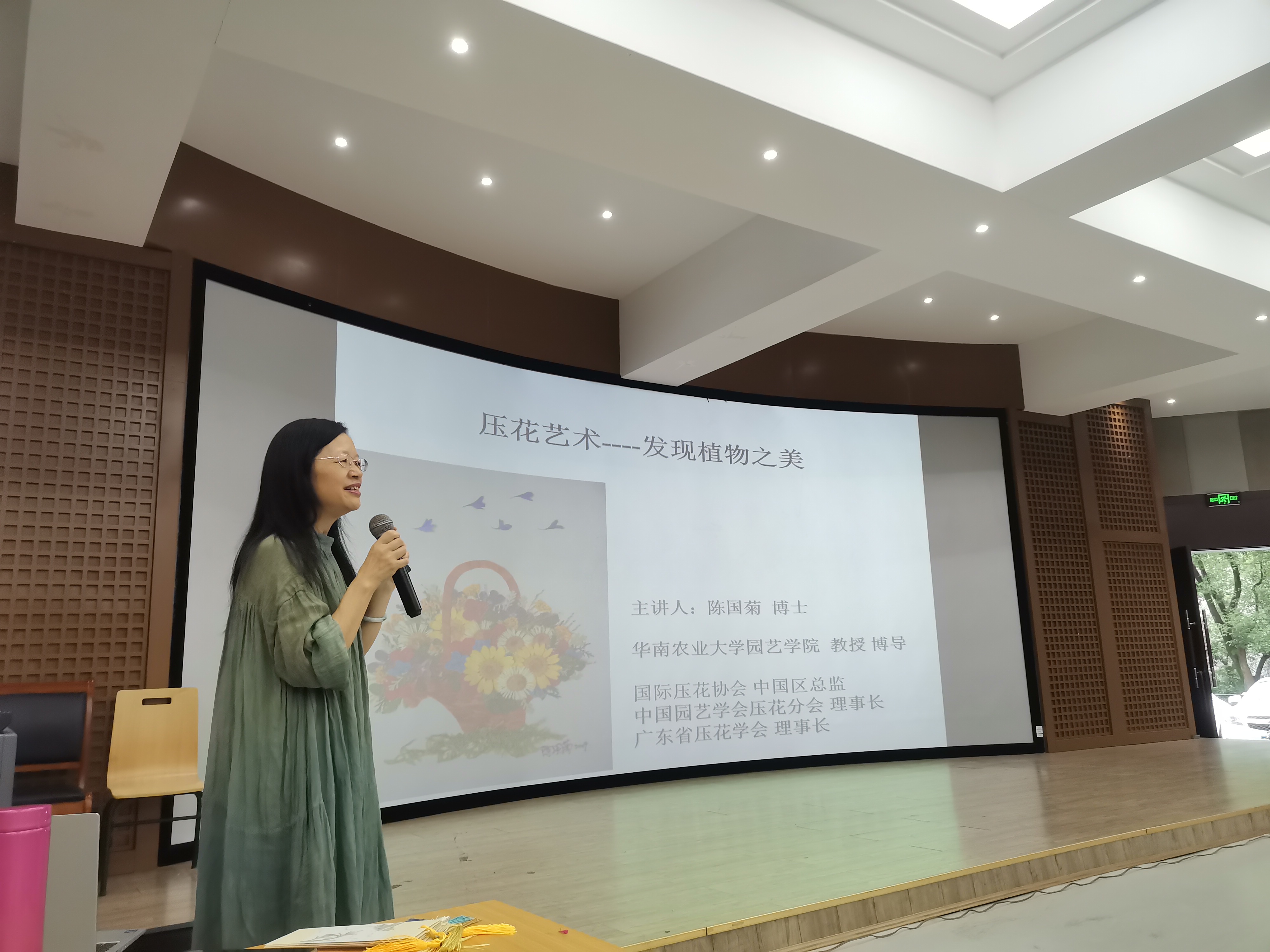 9月23日上午,国际压花大师、国际压花协会中国区总监、中国园艺学会压花分会理事长、广东省压花学会理事长、华南农业大学园艺学院陈国菊教授应邀在星湖八阶作了题为“压花艺术——发现植物之美”的学术报告。报告由党总支副书记/副院长孙翰昌主持,学院相关教师及160余名学生聆听了报告。
