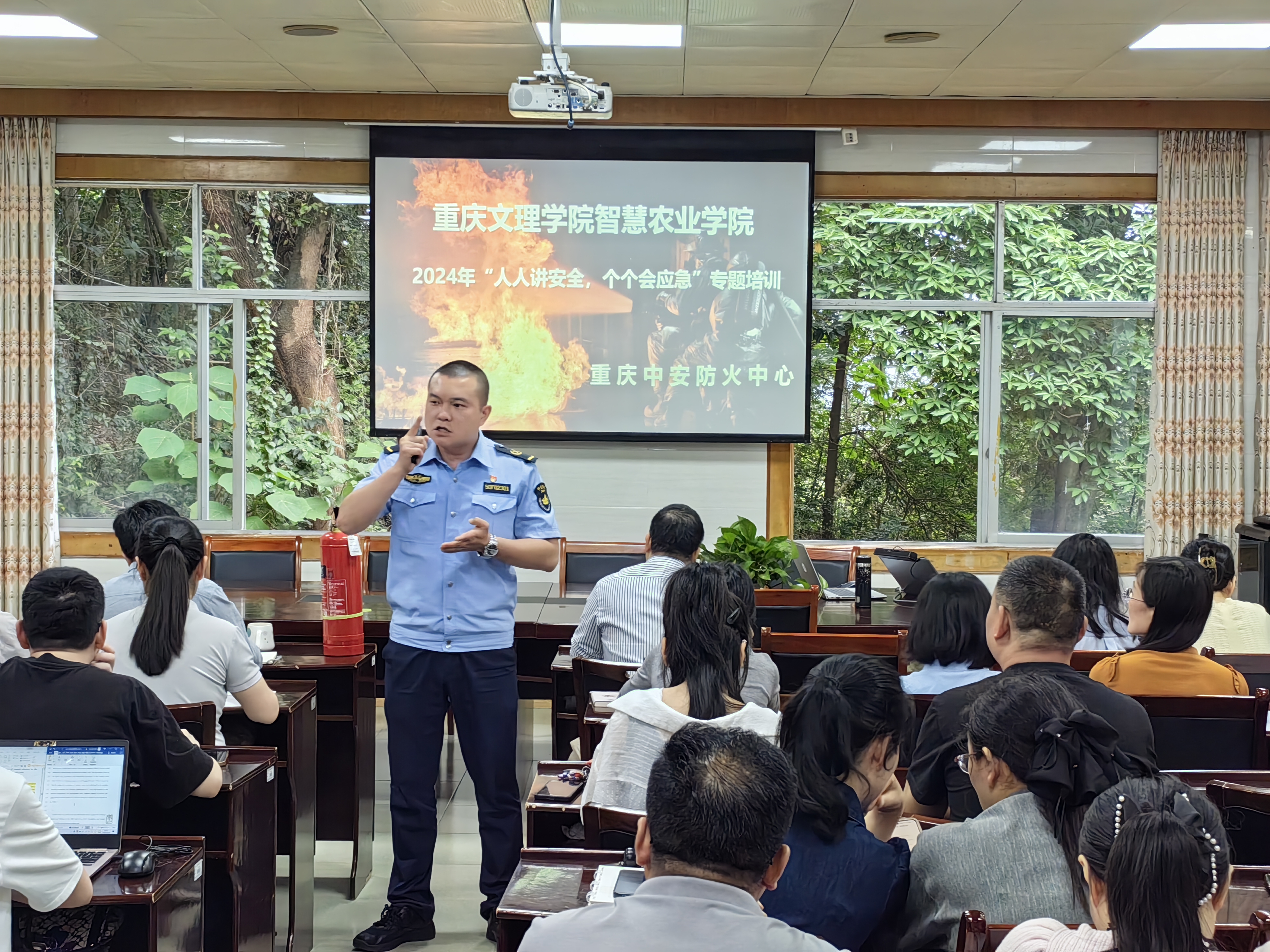 为强化全院师生安全意识,提升消防安全知识水平和应急处置能力,预防安全事故发生,营造良好的教学、科研环境,5月29日下午,学院邀请了中安防火知识宣传培训中心蒋银银教官为师生进行消防安全知识培训和消防灭火演练活动,学院全体教师和部分学生共计100余人参加了此次培训。