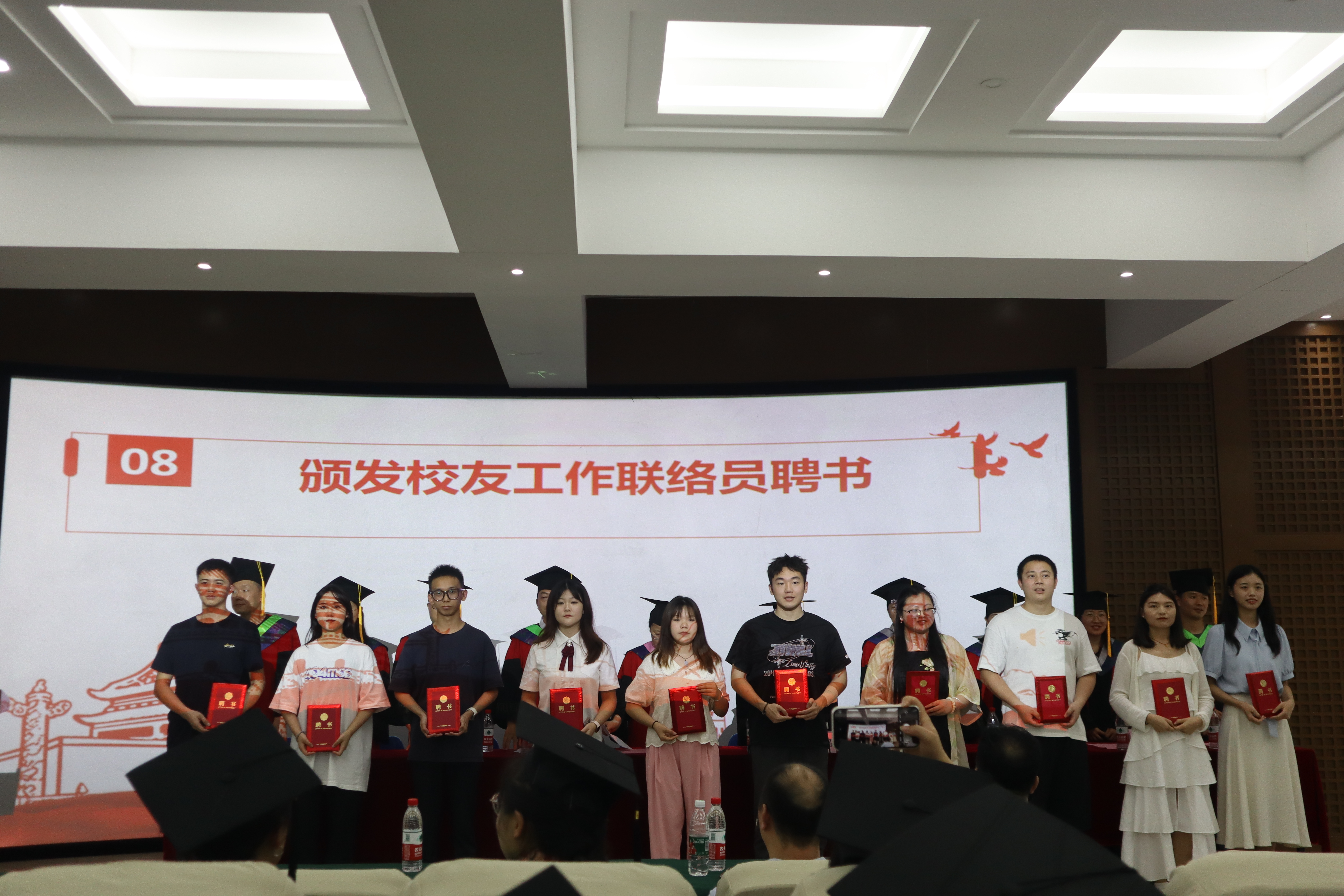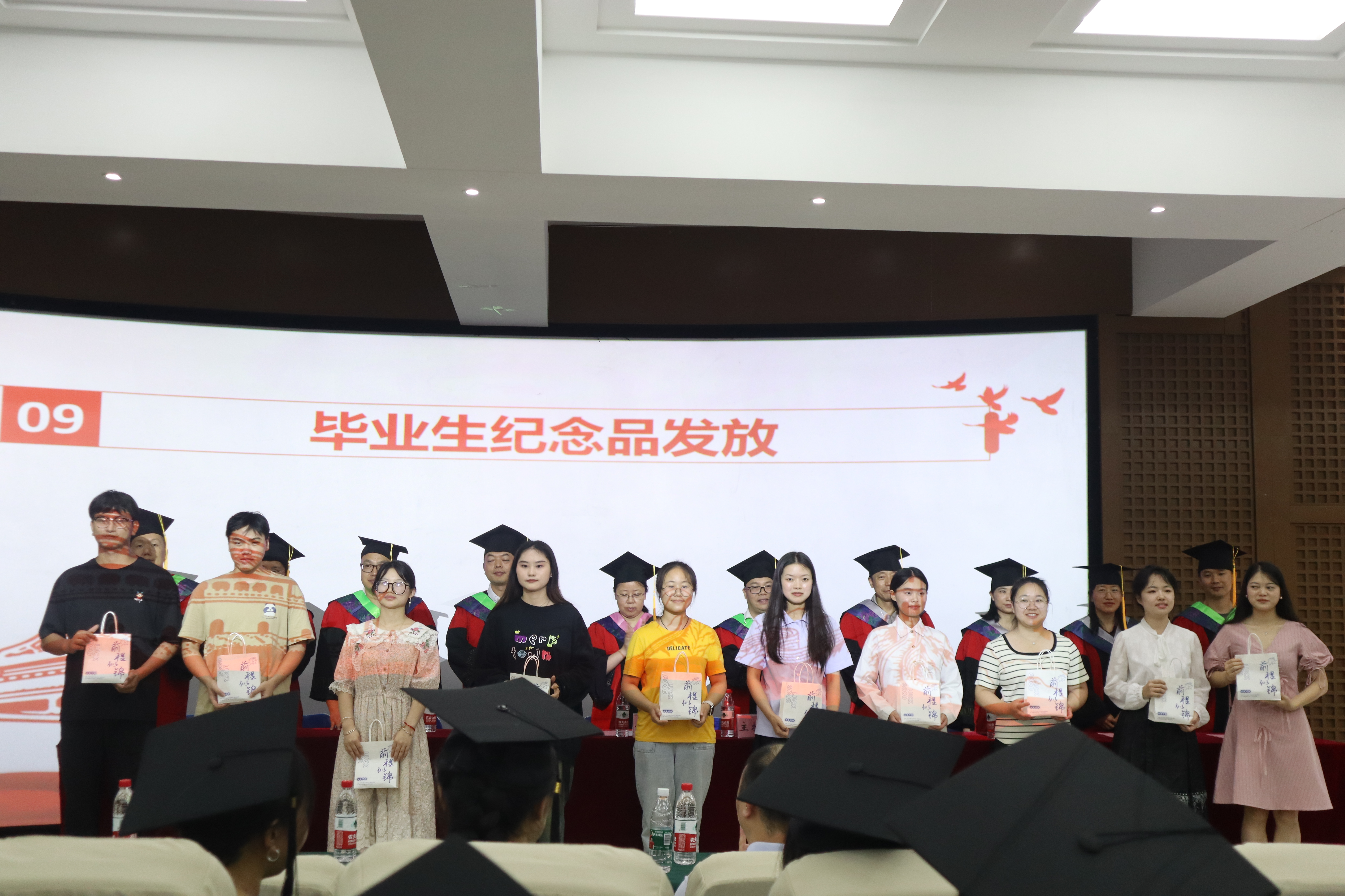 李洪雷宣读校级、市级优秀毕业生表彰文件,为优秀毕业生代表办法荣誉证书。刘小利宣读聘任校友工作联络员文件,为校友工作联络员颁发聘书。接着,与会领导和老师为毕业生颁发毕业生纪念品。刘小利总结讲话,寄予毕业生同学们。在授位环节,刘小利宣读了2024届毕业生学士学位授位文件,学院全体学位委员会委员集体为毕业生授位。