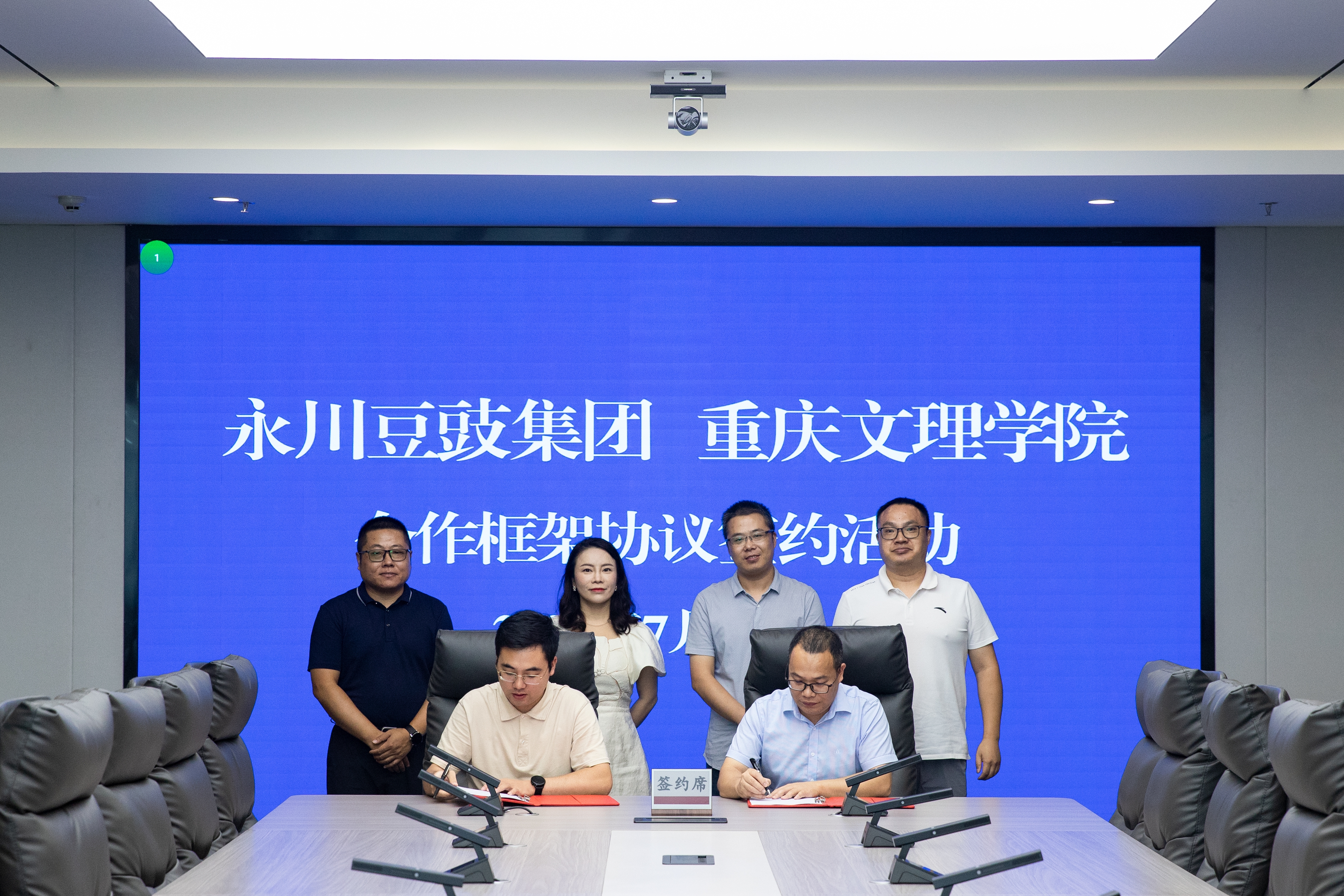 7月31日,学院与永川联合豆豉(集团)有限公司共建实践教学基地授牌仪式在永川高新集团909会议室举行。重庆豪翔高新科技产业发展有限公司副总经理袁蝶、重庆豪翔高新科技产业发展有限公司副总经理兼永川联合豆豉(集团)有限公司董事长刘飞、副总经理谢永选,学院党委副书记、纪委书记孙翰昌、教学与实验实训中心主任游玉明、智慧农业系主任黄科等出席签约仪式。