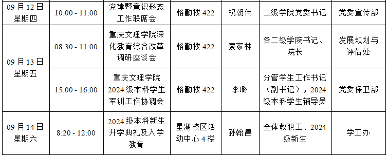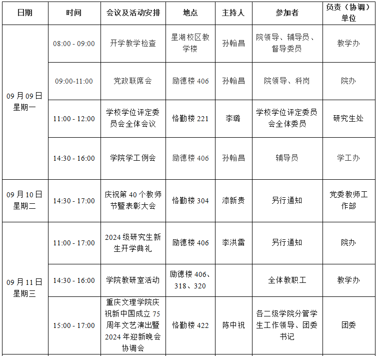 bw必威西汉姆联官网2024—2025学年第一学期第1周会议 (活动)及工作安排