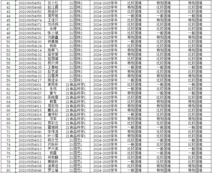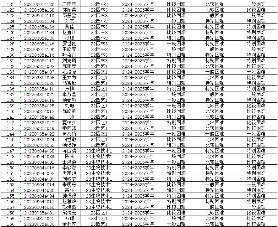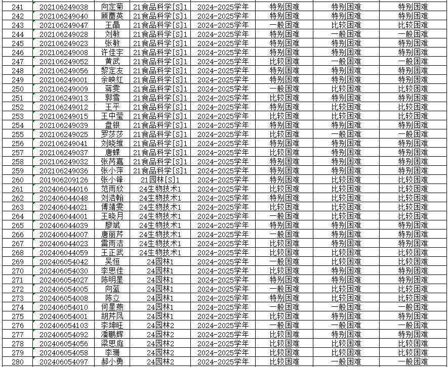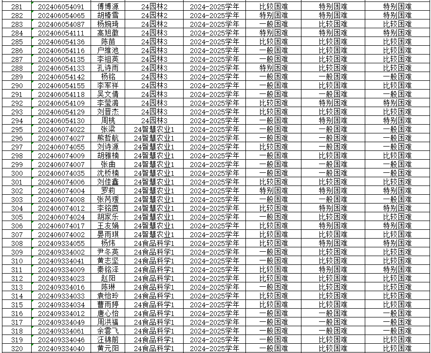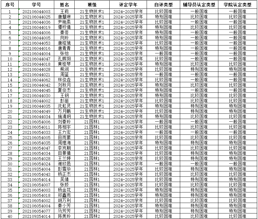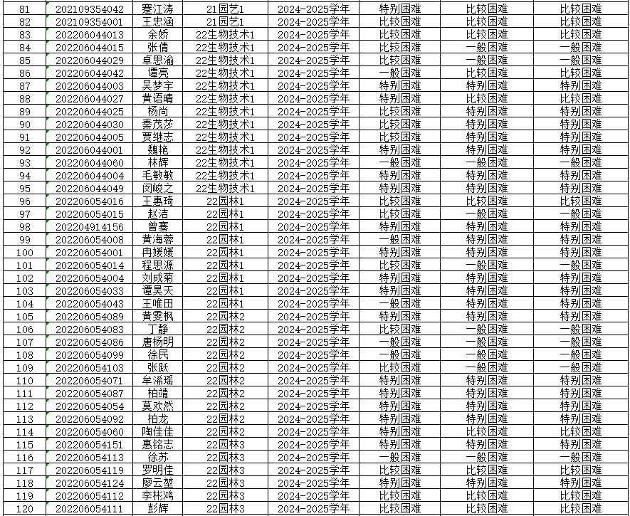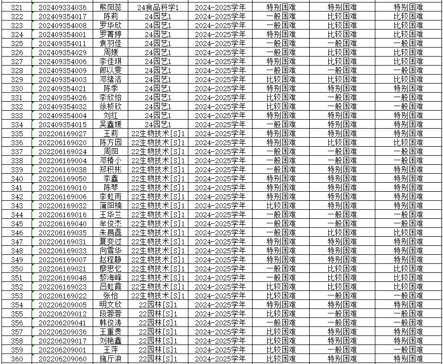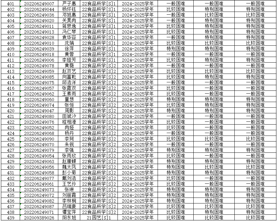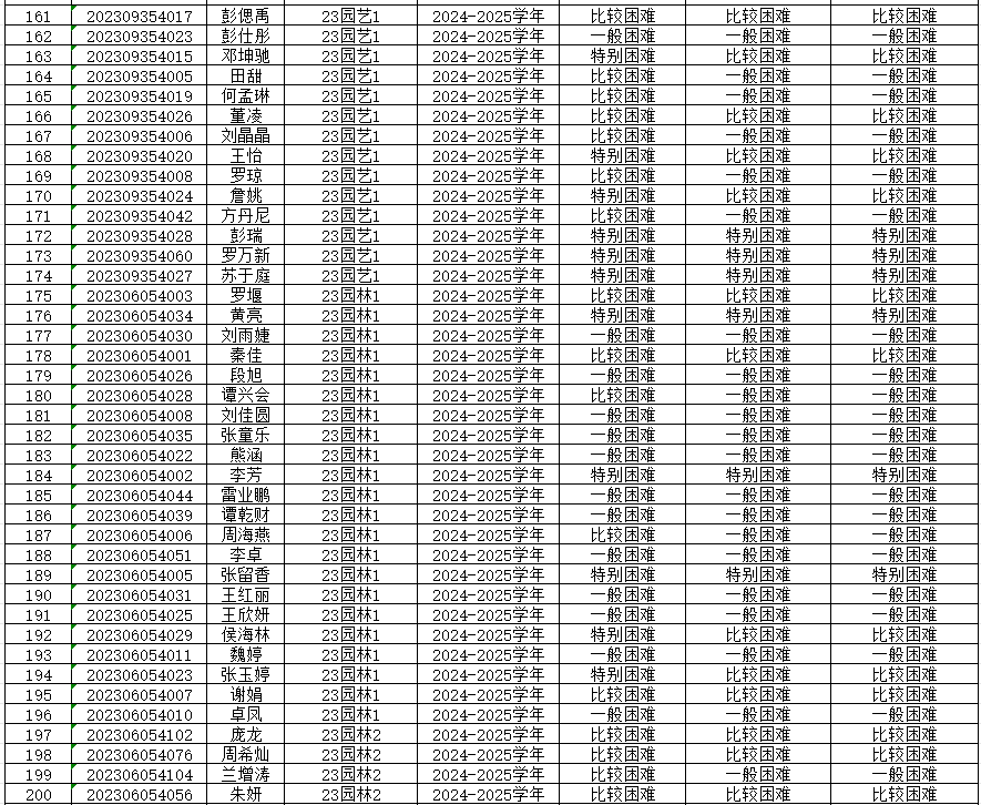 为切实保证国家高等学校资助政策和措施真正落实到家庭经济困难学生身上,公平、公正、合理的分配资助资源,根据上级有关文件精神和《重庆文理学院本科生家庭经济困难认定管理办法》,学院开展了2024—2025学年本科生家庭经济困难认定工作。 经各年级(专业、班级)民主评议,学院认定,现将认定结果公示如下,公示期为9月20日-9月23日,公示期间如有异议,请到学院学生奖助工作评审领导小组反映情况(励德楼202室)。