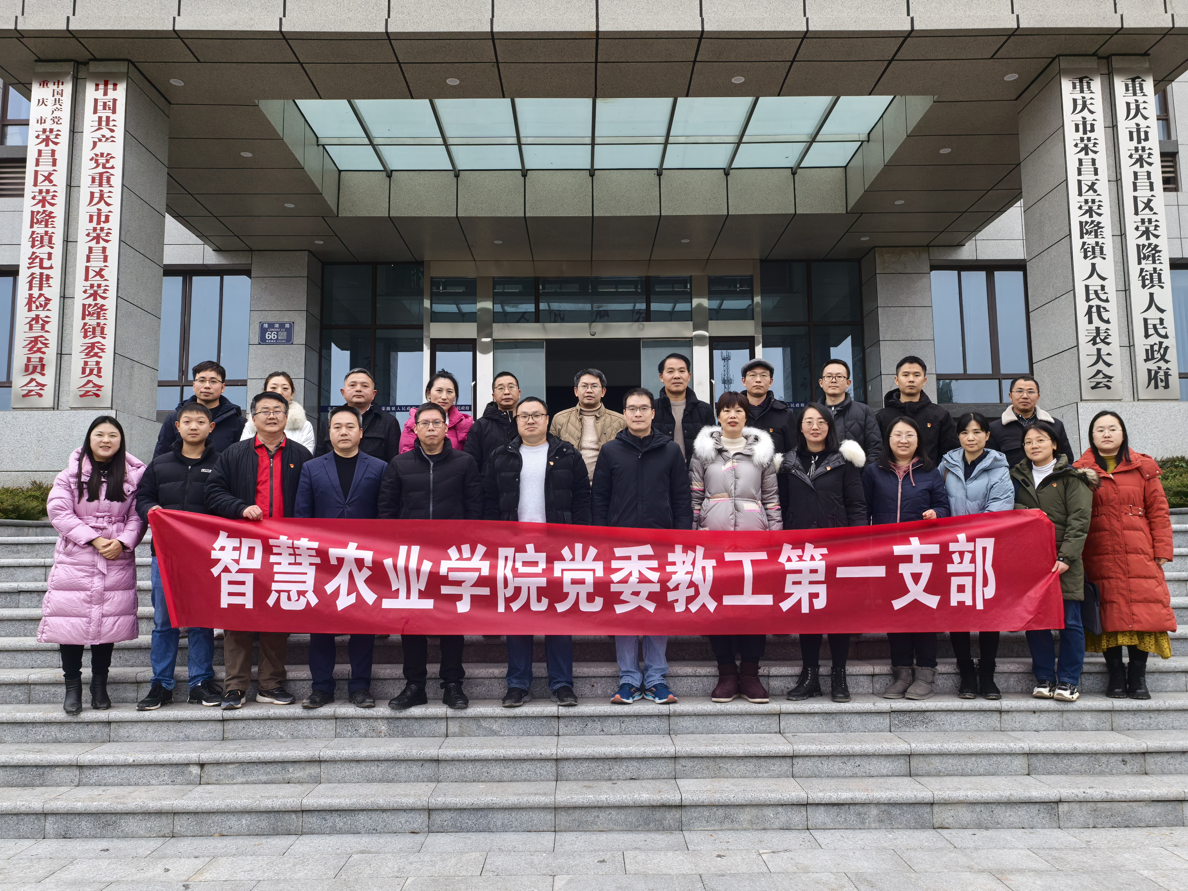 2024年12月10日,我院教工第一党支部全体党员同志赴荣昌区荣隆镇与荣昌区荣隆镇机关一二支部开展“党建聚智·引领村振兴”的党建交流活动,荣隆镇部分食品加工、生物医药、农业企业代表参与本次活动。