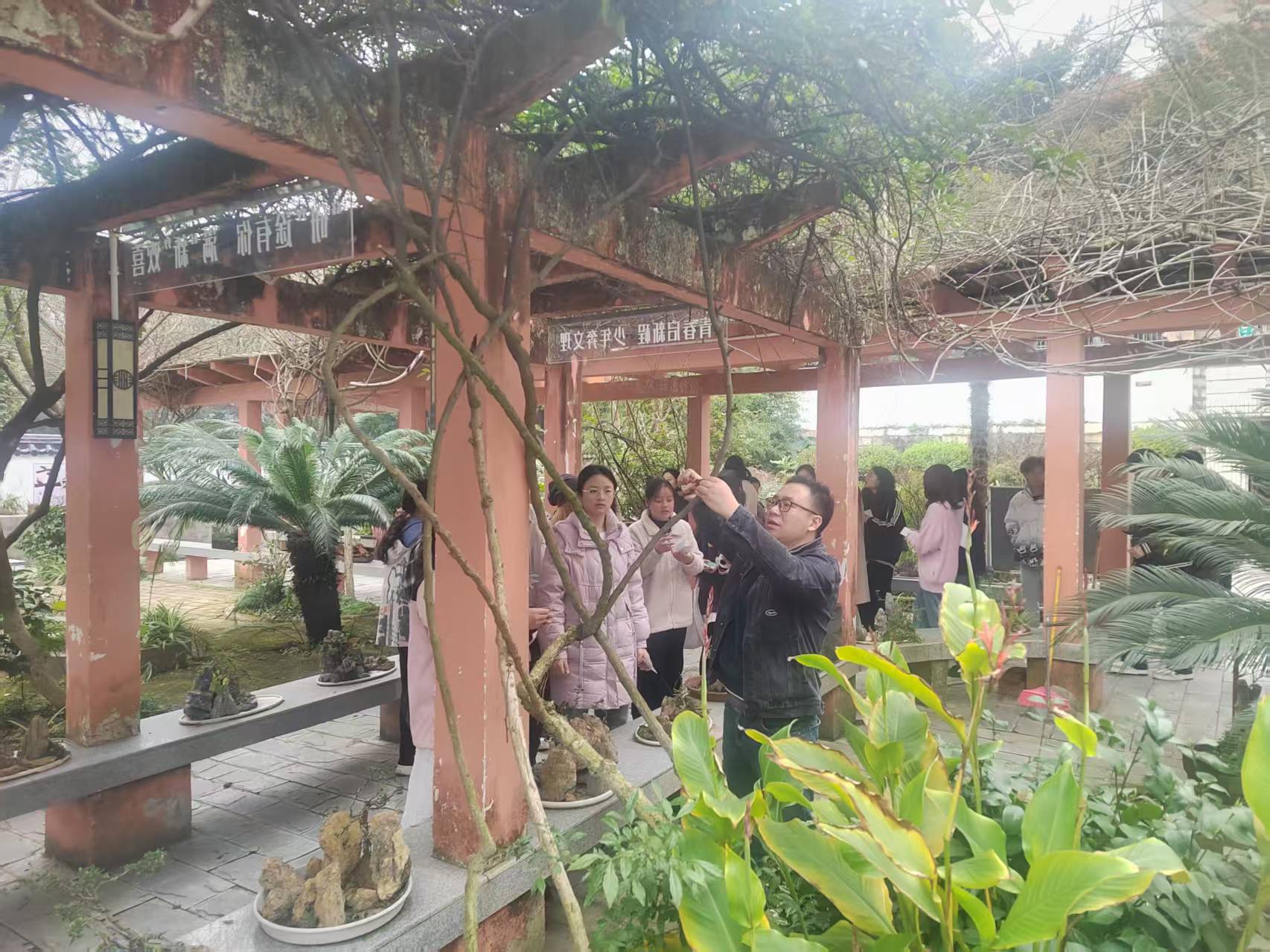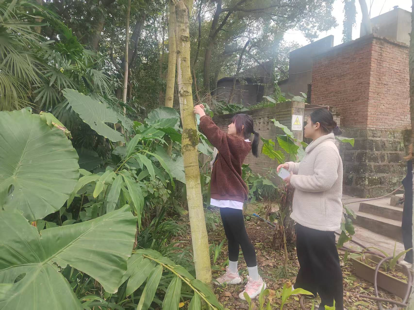 同学们在专业老师的讲解、示范、演示下,分组为星湖校区撷英园植物挂标识牌,为园区内的植物佩戴上专属“身份证”,绿意盎然,铭牌相伴,标识牌成了一道靓丽的风景线。