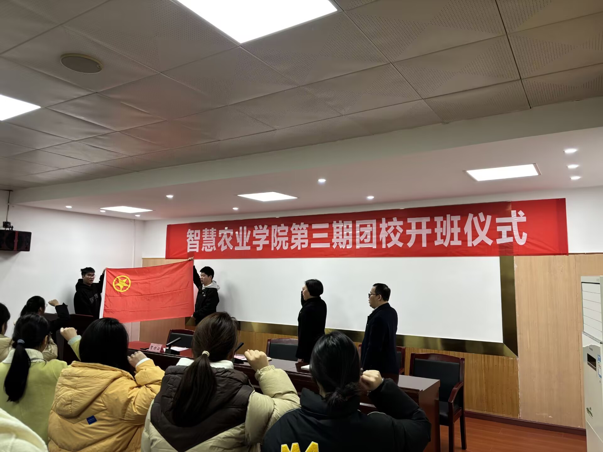 活动伊始,全体成员齐唱团歌,歌声嘹亮,展现出智慧农业青年学子的蓬勃朝气和昂扬斗志。随后,2024级罗莉同学代表培训学员发言,贺方云宣读团校管理办法,全体与会学员重温入团誓词。