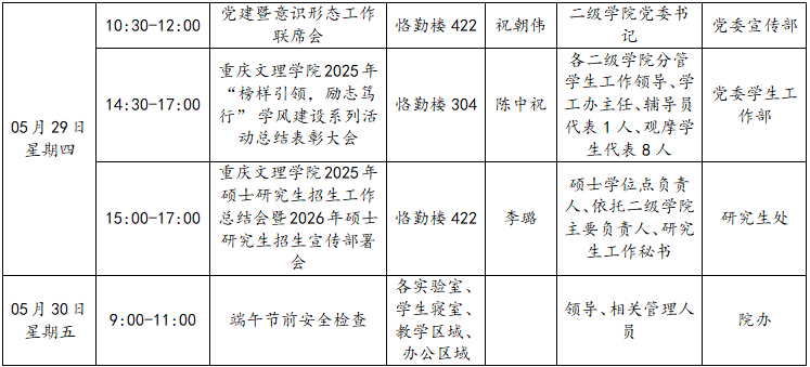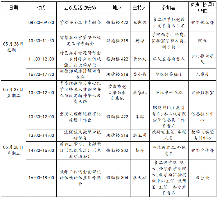 bw必威西汉姆联官网2024—2025学年第二学期第14周会议(活动)及工作安排