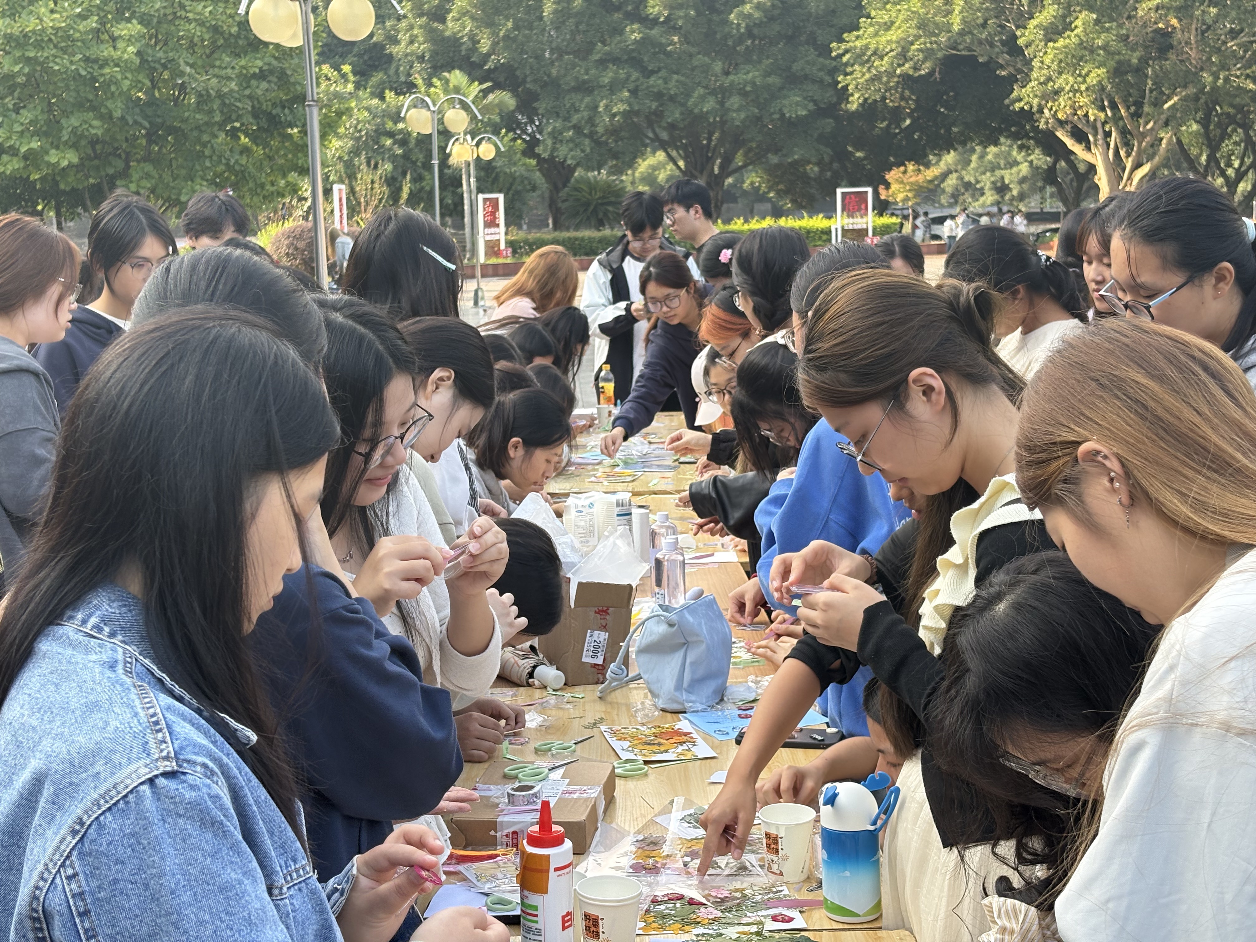 2025年10月15日,由党委学生工作部主办,bw必威西汉姆联官网大学生雅风花社、“沐歌承技”耕读工作室承办的主题为“以美润心、绘心写意——压花艺术与心理健康体验”花艺疗愈活动在沐歌星湖社区星湖广场顺利开展,来自各学院同学共计200余人参与。