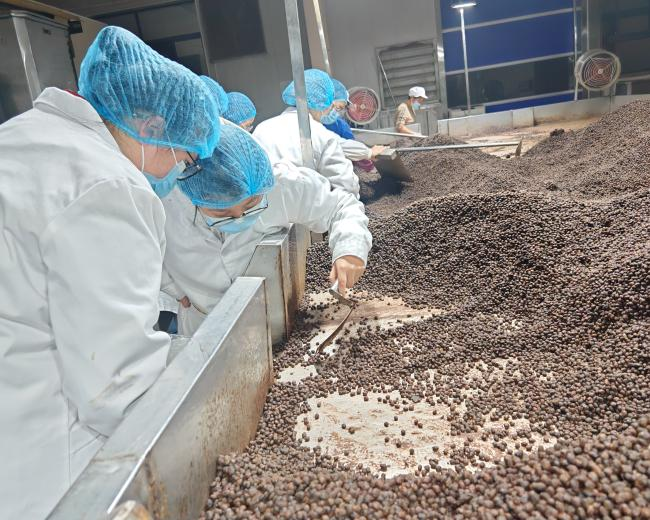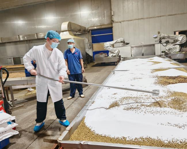随后的实践环节,学员们分为两组,分别围绕豆豉酿造工艺与质量溯源两大模块开展系统性学习实践。在豆豉酿造工艺模块,学员们沉浸式体验豆豉酿造的全流程操作,亲历原料浸泡、蒸煮、制曲、发酵及成品包装等关键工序,切身感受“一粒豆”到“一味豉”的蜕变历程。在质量溯源模块,学员们则系统学习了HACCP体系在豆豉品质控制中的应用及关键质量指标检测方法。通过实地操作,同学们不仅掌握了科学的品控手段,更建立起从原料到终端产品的全过程质量安全意识,筑牢食品安全与标准化生产的专业根基。此外,师生们还走进复合调味料加工车间,学习了豆豉复合调味料加工技术,拓宽了对调味品深加工与产品多元化的理解。