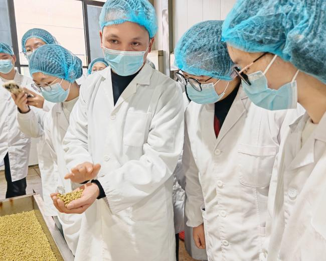 活动首日,企业技术总监、永川豆豉酿制技艺非物质文化遗产传承人、永川工匠陈本开以《永川豆豉历史文化与产品创制》为题开展专题讲座,为同学们介绍了永川豆豉370余年的发展脉络,深入解读其传统发酵技艺的文化价值与技艺特色,同时详细介绍了“君意”品牌的创新发展路径。随后,济南大学张炳文教授围绕传统豆豉的营养品质评价展开分享,进一步深化同学们对豆豉营养价值与品质体系的认知。讲座结束后,大家走进豆豉生产线,实地观摩从原料处理到成品包装的全流程,亲眼见证传统非遗技艺的匠心传承与现代生产技术的创新融合,直观感受老字号在坚守与突破中绽放的独特魅力。