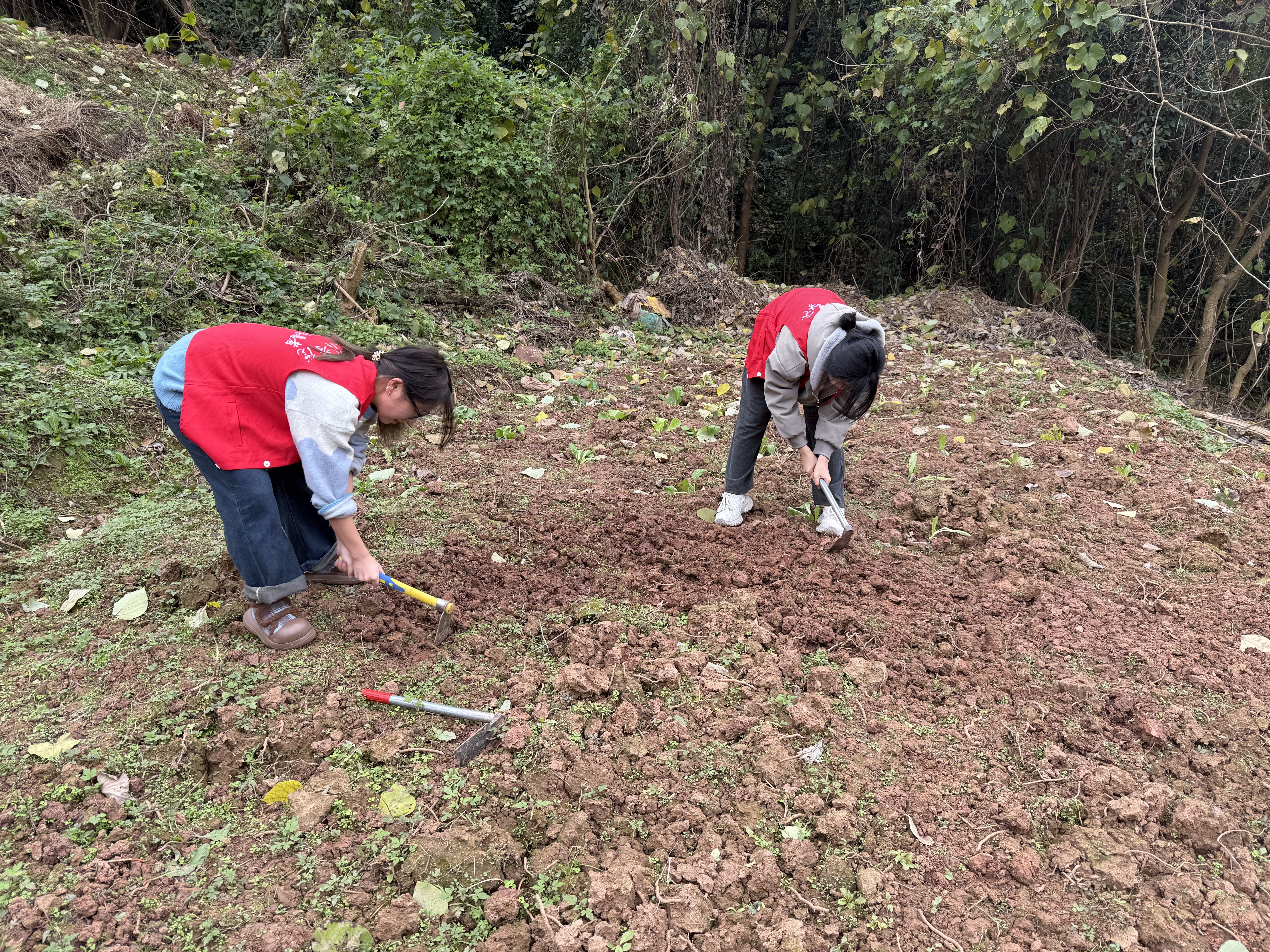 活动现场,学生党员等志愿者们满怀热忱、分工协作,翻耕松土、平整地块、划分垄沟,每一步操作都严谨细致,尽显涉农学子的专业素养与务实作风。手持萝卜、香菜等蔬菜种子,循着农耕要领精准播种、轻覆薄土,指尖轻触泥土传递对自然的敬畏,田间地头回荡着协作互助的青春笑语。从整地备种到播撒希望,学子们沉浸式体验农耕全流程,不仅熟练掌握基础农耕技能,更深刻感悟“一粥一饭,当思来处不易”的深刻内涵,真切体会农耕劳作的艰辛与收获的可期。